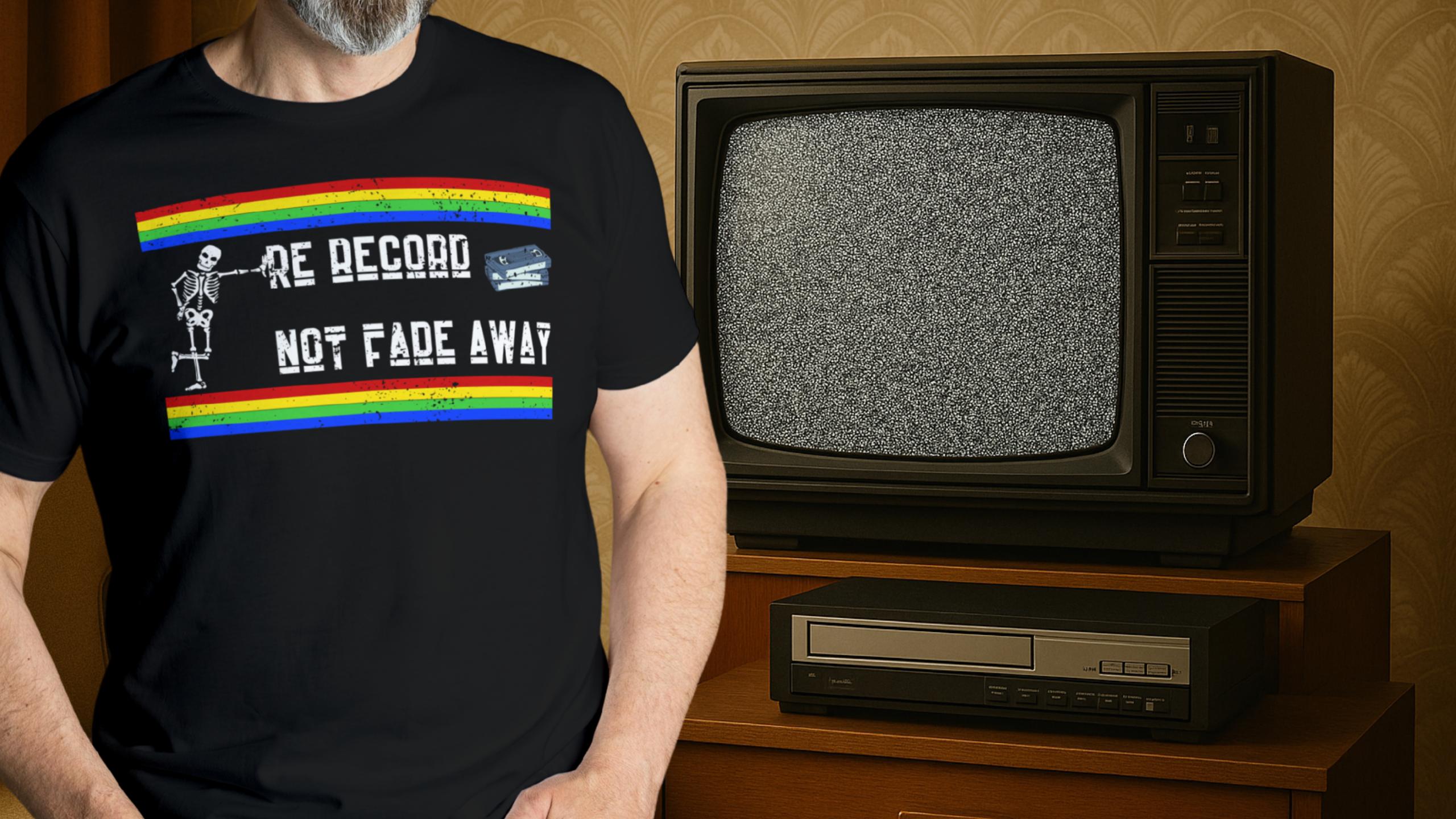 Take a trip back to the golden age of VHS with the “Re‑Record, Not Fade Away” tee—a nostalgic nod to rewinding tapes, long-play memories, and the analog roots of Generation X. This premium unisex shirt features a playful skeleton playing with video cassettes, celebrating those who actually went “live” in the ’70s, ’80s, and early ’90s.